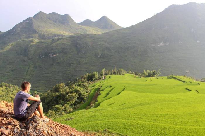 - những núi non hùng vĩ (Hà Giang, Tà Xùa) và ruộng cúa bậc thang (Mù Cang Chải, Pù Luông) tại miền Bắc,